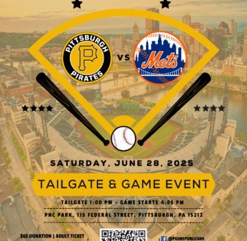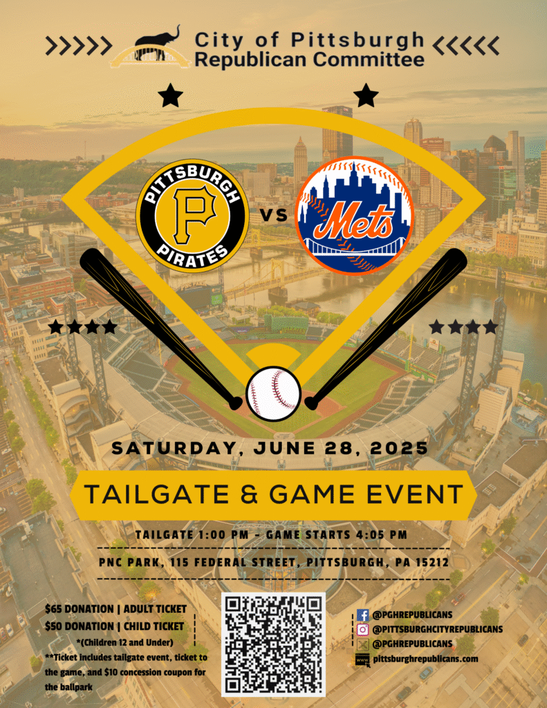 Join us for a fun-filled game day event with the Pirates taking on the Mets, hosted by the City of Pittsburgh Republican Committee!